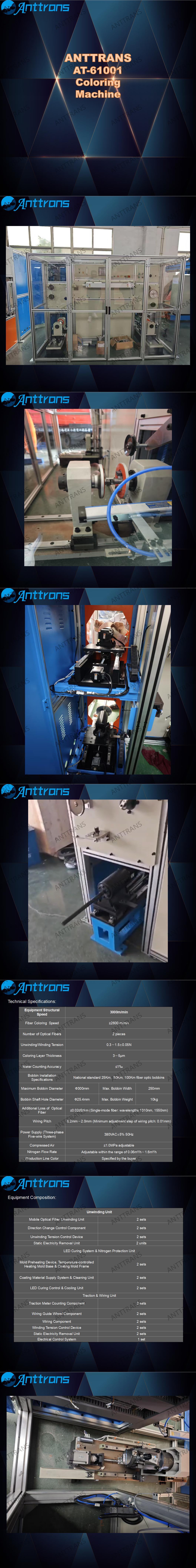用于SM、MM光纤全色谱着色,也可用于光纤复绕或分盘。可同时进行对两根光纤进行着色或复绕。设备采用国际先进的PLC和工业级人机界面控制。