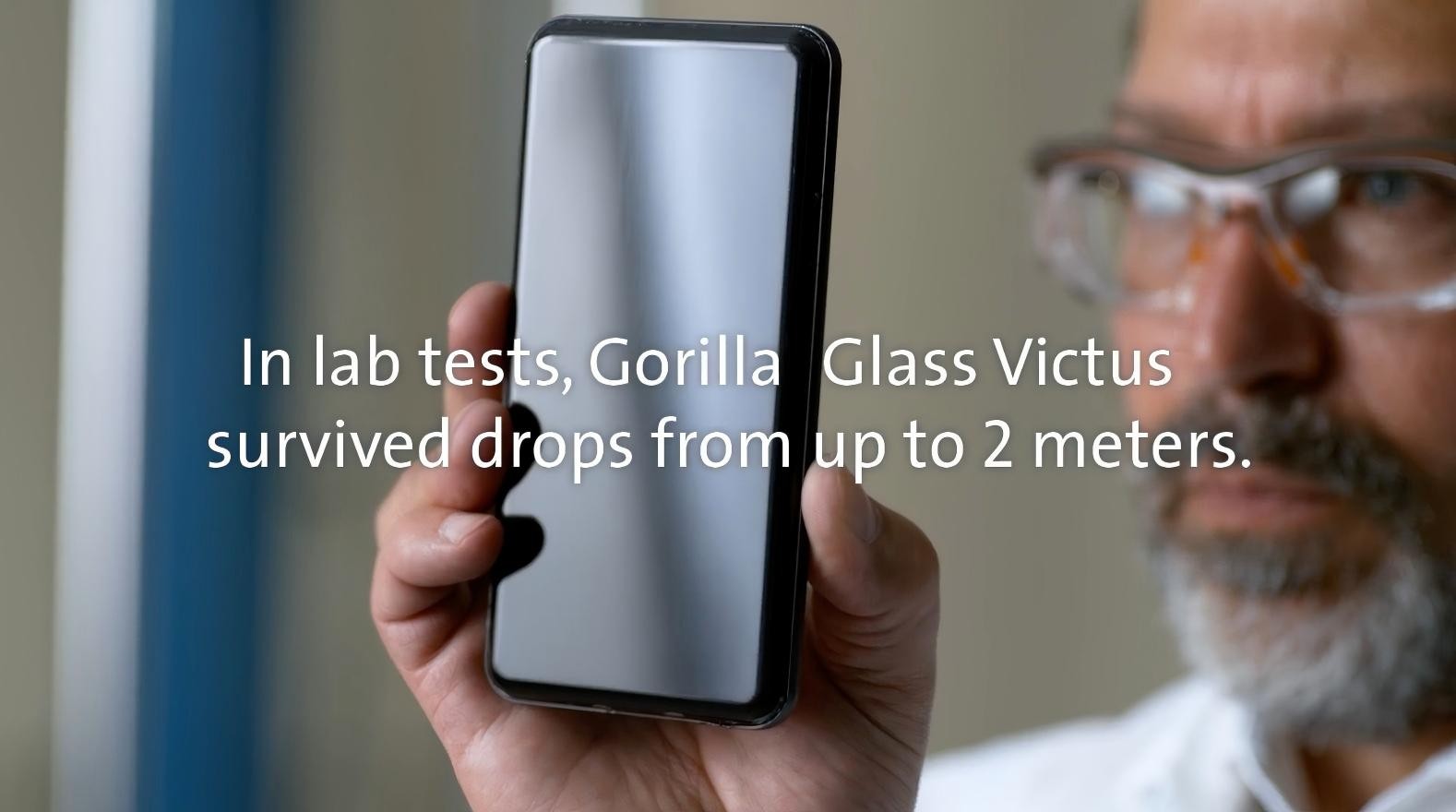 在实验室测试中,大猩猩玻璃 Victus 可承受从 2 米高处跌落至 80 目砂纸的冲击。竞品铝硅酸盐玻璃通常无法承受从 0.8 米高处跌落的冲击。