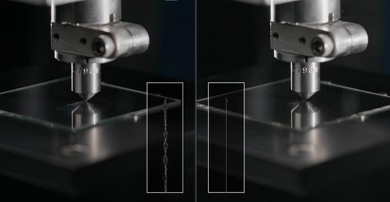 我们采用努普钻石划痕测试评估抗划痕阈值。
